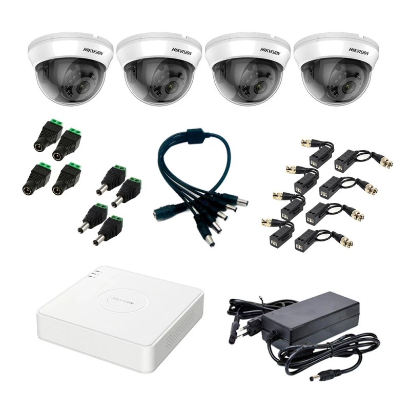 Комплект видеонаблюдения Hikvision на 4 видеокамеры 5Мп внутренний аналоговый состоит из HD-TVI видеорегистратора 4-канального Hikvision iDS-7104HUHI-M1/S(C) с поддержкой видеоаналитики, 4 HD-TVI видеокамеры 5 Мп Hikvision DS-2CE56H0T-IRMMF (C) (2.8 мм), блок питания Full Energy BGP-125Pro 12В / 5А, 4 приемника-передатчика ATIS AL-200 UHD (pair), разветвитель питания ATIS L5, 4 разъема-power ATIS под зажим (мама), 4 разъема-power ATIS под зажим (папа). Звуковые функции не предусмотрены. БП от регистратора не нужен при централизованном питании. К комплекту требуется отдельно приобрести кабель нужной длины в зависимости от поставленной задачи, и при необходимости — монитор.