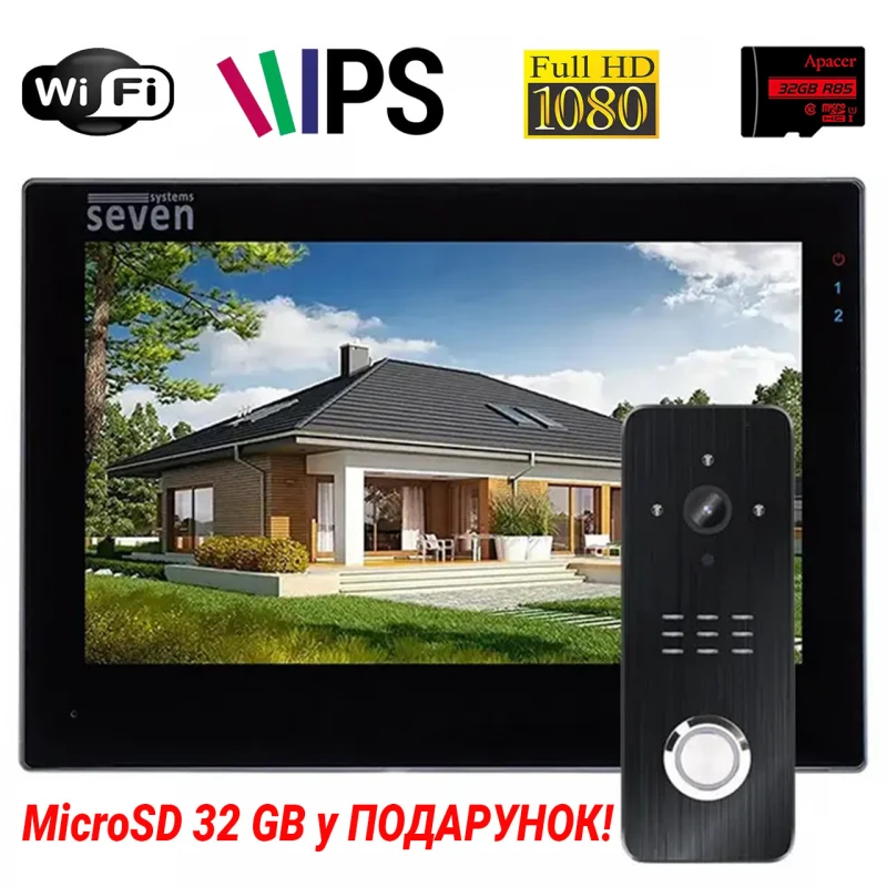 Комплект Wi-Fi видеодомофона SEVEN DP-7577/07Kit black для квартиры, частного дома или офиса