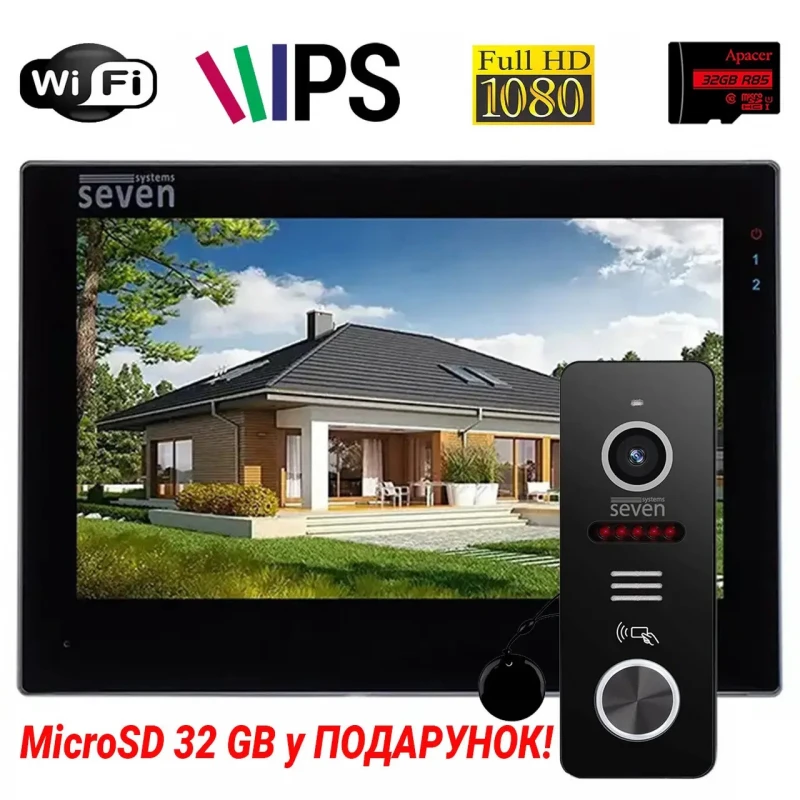 Комплект Wi-Fi видеодомофона SEVEN DP-7577/02Kit black для квартиры, частного дома или офиса