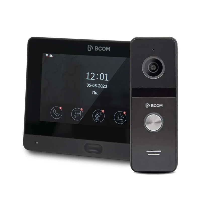Комплект Wi-Fi видеодомофон и вызывная панель BCOM BD-760FHD/T Black + BT-400FHD Black.