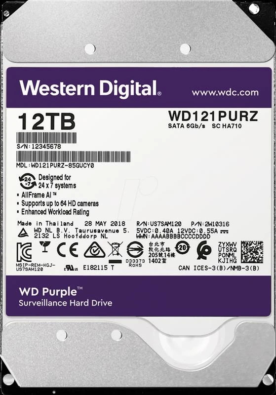 Накопичувач HDD SATA 12.0TB WD Purple 7200rpm 256MB (WD121PURZ)