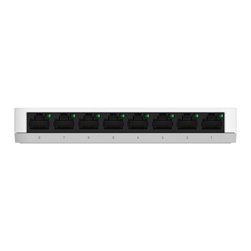 Гігабітний комутатор DGS-1008 є економічним рішенням, призначеним для мереж SOHO. Цей комутатор підтримує технологію D Link Green, що забезпечує знижене споживання електроенергії, низький рівень тепловиділення та збільшення терміну експлуатації без впливу на продуктивність та функціональні характеристики. 8 портів 10/100/1000Base-T та легкий процес установки дозволяють швидко розширити мережу та надають можливість передачі даних на гігабітній швидкості. Компактність та легка установка Комутатор DGS-1008A виконаний в компактному корпусі, який гармонійно виглядатиме в будь-якому інтер’єрі. При установці не потрібно робити складні налаштування, для створення нової мережі Gigabit Ethernet просто підключіть адаптер живлення до пристрою. Вигідне рішення Комутатор DGS-1008A є вигідним рішенням, що дозволяє підключити до 8 пристроїв до гігабітних Ethernet-портів. Пристрій підтримує додаткові функції не тільки для покращення продуктивності, але і для скорочення енергоспоживання, що робить комутатори цієї серії найкращим рішенням у своїй ціновій категорії. Додаткові функції Завдяки підтримці 802.3 Energy-Efficient Ethernet, комутатор DGS-1008A дозволяє економити електроенергію. Пристрій визначає статус з’єднання кожного порту і забезпечує автоматичне відключення живлення неактивних портів. Крім того, цей комутатор підтримує функцію 802.1p QoS, яка дозволяє обробляти мережевий трафік із встановленим рівнем пріоритету, забезпечуючи таким чином ефективну передачу даних, чутливих до затримок, та високу якість дзвінків VoIP навіть у мережах з інтенсивним трафіком.