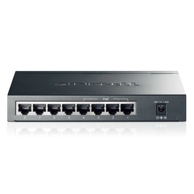 8-портовий настільний комутатор TL-SG1008P від компанії TP-Link, забезпечує просте підключення пристроїв до вашої мережі і підтримує стандарти Ethernet і Fast Ethernet, що дозволяють здійснювати передачу даних на швидкостях 10/100 Мбіт/с і 1000 Мбіт/с відповідно. 4 з 8 портів RJ45 з автоматичним визначенням (з 1-го по 4-й порт) підтримують технологію PoE (живлення по Ethernet-кабелю). Ці порти можуть автоматично визначати та подавати живлення пристроям на базі стандарту стандарт IEEE 802.3af, що підтримують функцію PoE. У цьому випадку дані та електроенергія передаються по одному кабелю, що дозволяє вам встановлювати мережеві пристрої навіть у тих місцях, де відсутній доступ до розетки або ліній електропередач. Тепер ви можете розташувати точку доступу, IP камеру або телефон в будь-якому зручному для вас місці. TL-SG1008P оснащений функцією призначення пріоритетності *, яка дозволяє захистити систему від перевантажень. Якщо потужність всіх споживачів перевищить максимально допустиму - 53 Вт, пріоритети будуть розподілені по PoE-портах таким чином, що порт з найменшим пріоритетом не буде отримувати живлення. Комутатор простий в установці і легкий в експлуатації. Завдяки настільному дизайну, високій продуктивності та якості роботи настільний комутатор TL-SG1008P - найкраще рішення для розширення вашої домашньої або офісної мережі. * - Пріоритети розподіляються таким чином: порт 1 > порт 2 > порт 3 > порт 4. Це допомагає захистити пристрій від перевантажень. Як приклад розглянемо ситуацію, коли до 1, 2 і 4 порту підключені пристрої потужністю 15.4 Вт (максимальна потужність на кожному порту -15.4 Вт), що споживають разом 46.2 Вт (при максимальному навантаженні PoE індикатор горить червоним). Якщо тепер включити ще один 10-ватний пристрій в порт 3, то вихідна потужність перерозподілиться наступним чином: пристрої, підключені до портів 1 і 2, будуть використовувати по 15.4 Вт потужності, пристрій, підключений до 3-го порту, - 10 Вт, а на порт 4 живлення подаватися не буде. Основні особливості: Підтримка потужності 15.4 Вт для кожного PoE-порту Підтримка загальної споживаної потужності 53 Вт для всіх PoE-портів Підтримка пристроїв PoE на базі стандарту IEEE802.3af Підтримка стандарту керування потоком IEEE 802.3x Flow control для повнодуплексного режиму (Full Duplex) і функції затримки передачі при переповненні буфера (Backpressure) для напівдуплексного режиму (Half Duplex) 1000 записів у таблиці MAC-адрес з можливістю автовизначення і автоматичного очищення записів у таблиці за часом Світлодіодні індикатори для контролю живлення пристрою, інформування про наявність мережевого з"єднання, його активність і швидкість Зовнішній блок живлення