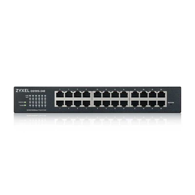 Компактна та доступна серія гібридних комутаторів Комутатор ZYXEL GS1915-24E 24-портовий комутатор. Комутатори серії GS1915 володіють корисними функціями та чудовою продуктивністю завдяки технології plug-n-play. Централізоване управління Nebula Серія GS1915 підтримує безкоштовне централізоване керування Nebula. Nebula надає як інтуїтивно зрозумілий веб-портал, так і мобільний додаток для спрощення встановлення та керування вашою мережею без додаткових витрат на програмний або апаратний контролер. Стандартний автономний режим, як і раніше, доступний для використання.