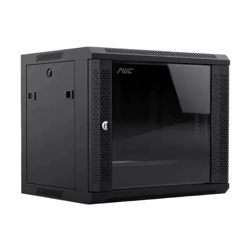 Комутаційна шафа з габаритними розмірами: ширина 600 мм, глибина 450 мм, висота 9U – 500 мм; максимальная нагрузка 100 кг;максимальне навантаження 100 кг; матеріал корпусу: сталь, пофарбована порошковою фарбою чорного кольору RAL9005; дверцята із загартованого скла, зачиняються на замок (2 ключі у комплекті); кабельні введення у верхній, нижній та задній панелях; ступінь захисту IP20; постачання – у розібраному вигляді