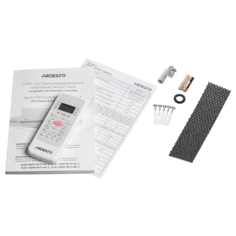 Внешний блок, Внутренний блок с кронштейном, Модуль Wi-Fi, Пульт ДУ, Дополнительные элементы для монтажа, Инструкция, Гарантийный талон