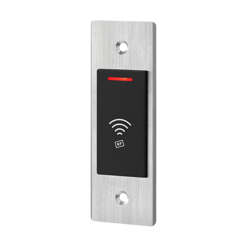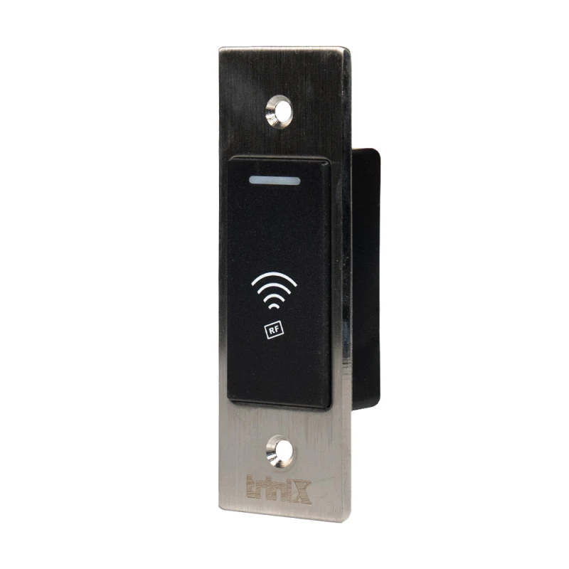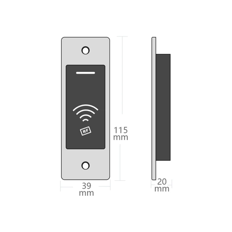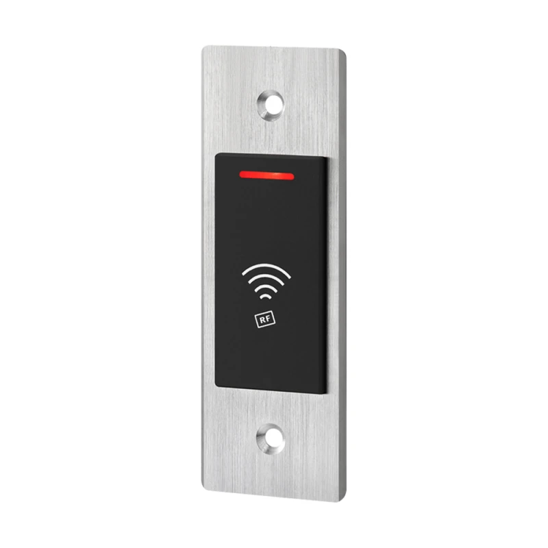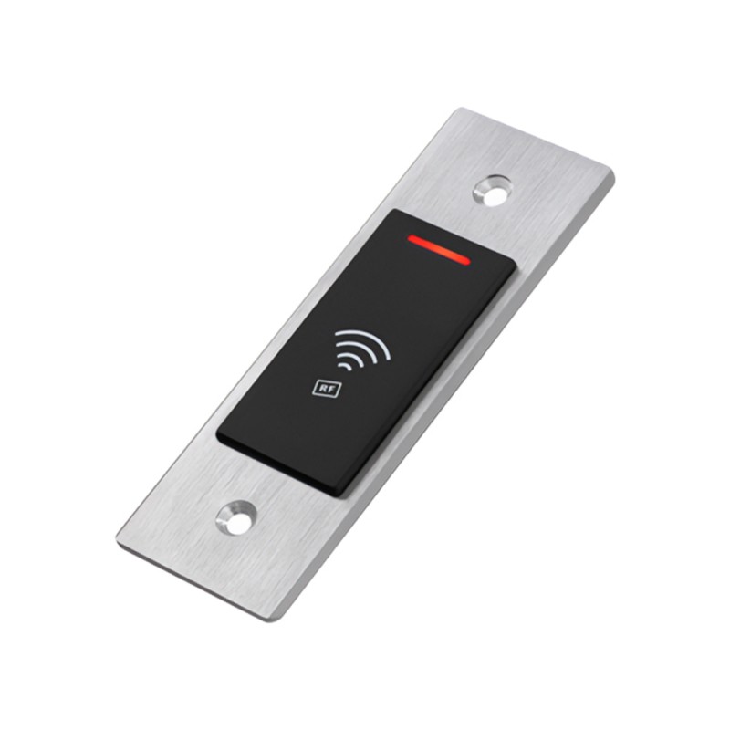 Автономний контролер/зчитувач Mifare 13.56 MHz, водонепроникний; одне реле (max 1 А); 10000 користувачів; дальність зчитувача карт 2-5 см; контакти реле NO/NC/COM; час відчинення дверей 0-99 с (налаштовується); програмується за допомогою майстер-карт чи пульта дистанційного керування; живлення DC 12-24 В, споживання 100 мА; металевий корпус; ступінь захисту IР68; робоча температура від -45°C до +60°C; розміри 115 / 39 / 20 мм; вага 105 г