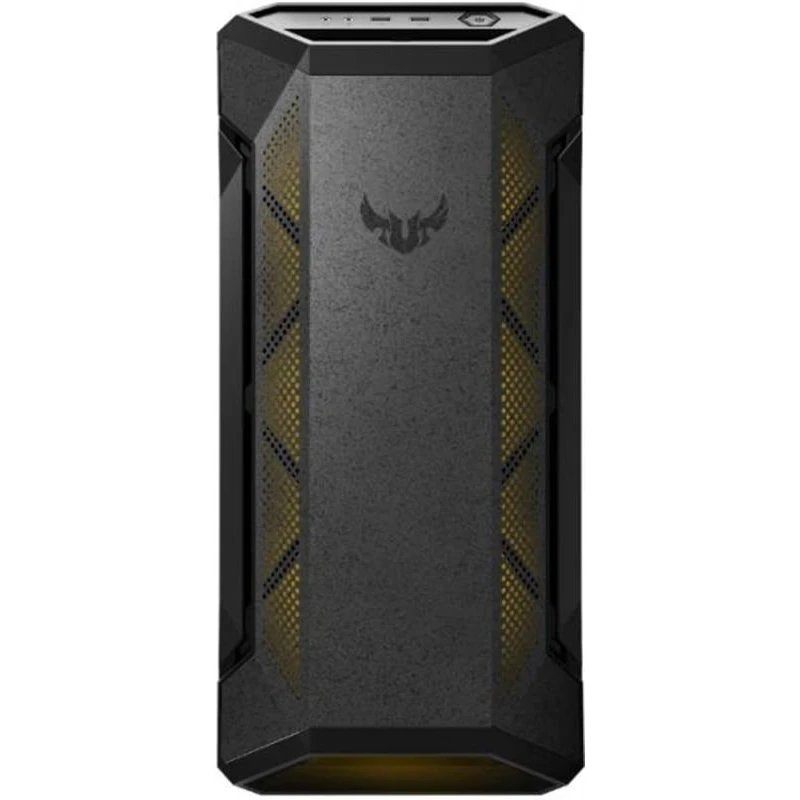 Геймерський дизайн Корпус TUF Gaming GT501 виготовлений із міцної оцинкованої сталі товщиною не більше 1,5 мм і має спеціальне покриття панелей, яке захищає їх від потертостей і подряпин. Він оснащений двома ергономічними плетеними ручками, що витримують навантаження до 30 кг, тому транспортувати готовий комп’ютер можна легко й безпечно. У стилі TUF Вікно з тонованого загартованого скла на всю висоту бічної панелі TUF Gaming GT501 дозволяє продемонструвати красу власної конфігурації, в якій особливо ефектно виглядатимуть компоненти зі світлодіодним підсвічуванням Aura. Сама ж панель легко відкривається завдяки шарнірам у нижній її частині. ЗАПАЛИ ГРУ! Встановлені в корпус TUF Gaming GT501 вентилятори мають повноколірне підсвічування. За наявності материнської плати, сумісної з технологією Aura, візуальні ефекти цього підсвічування можуть синхронізуватися з іншими Aura-сумісними компонентами й периферійними пристроями (технологія ASUS Aura Sync).
