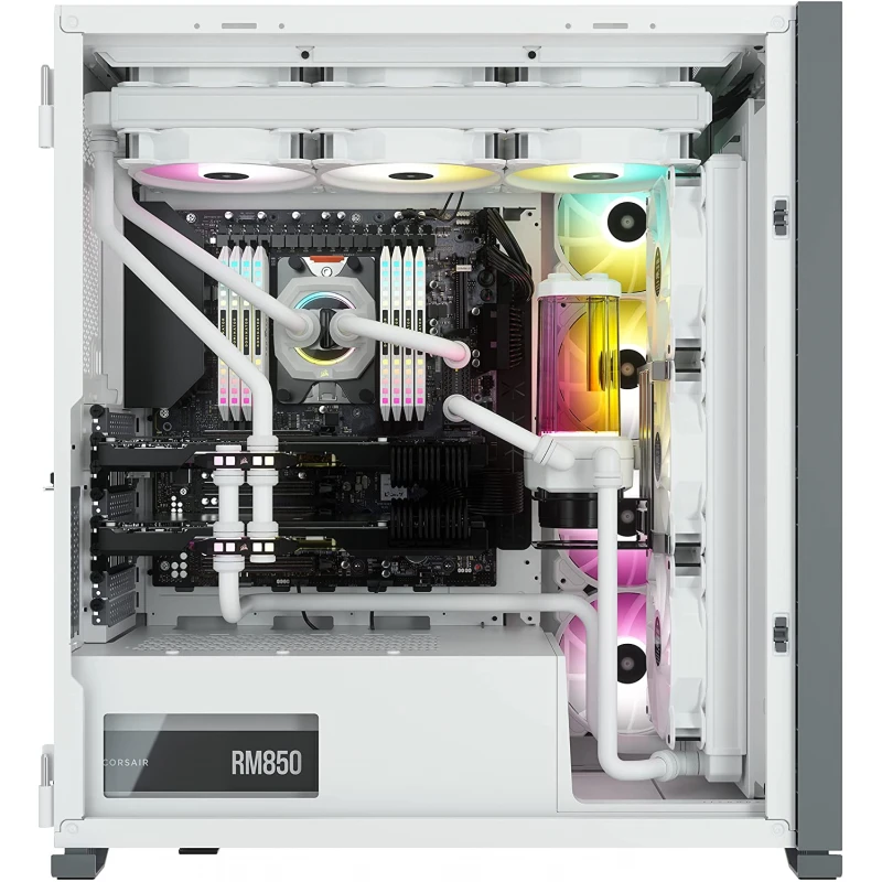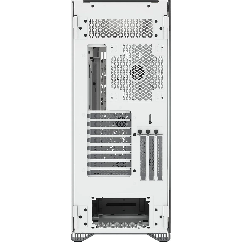 За трьома виготовленими із загартованого скла панелями корпусу CORSAIR iCUE 7000X RGB формату Full-Tower ATX усі компоненти вашої системи будуть видні як на долоні: простір для одночасної установки до трьох 360-міліметрових радіаторів, система прихованого прокладення кабелів і чотири вентилятори CORSAIR SP140 RGB ELITE, що входять в комплект.
