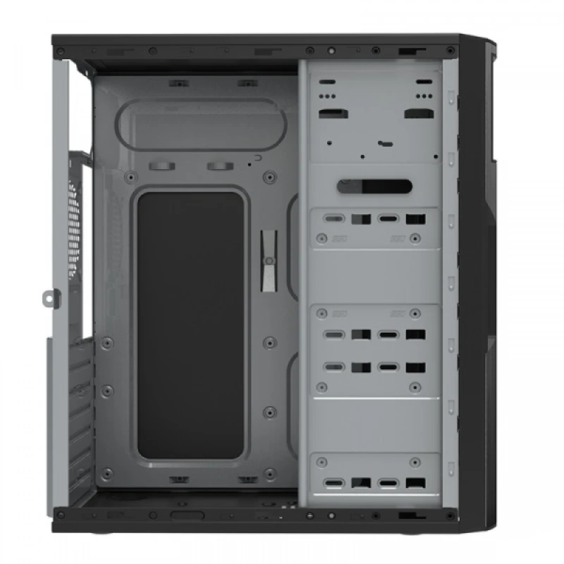 GameMax ET-211 - сучасний корпус формату ATX / mATX і типорозміру MidiTower. Корпус забарвлений в чорний колір і має закруглені краї стали, високоякісний пластик. Присутні необхідні роз’єми і інтерфейси, такі як USB, аудіороз’єм і роз’єм для мікрофона. Гарна циркуляція повітря забезпечується вентиляційними отворами бічний і задньої панелей.