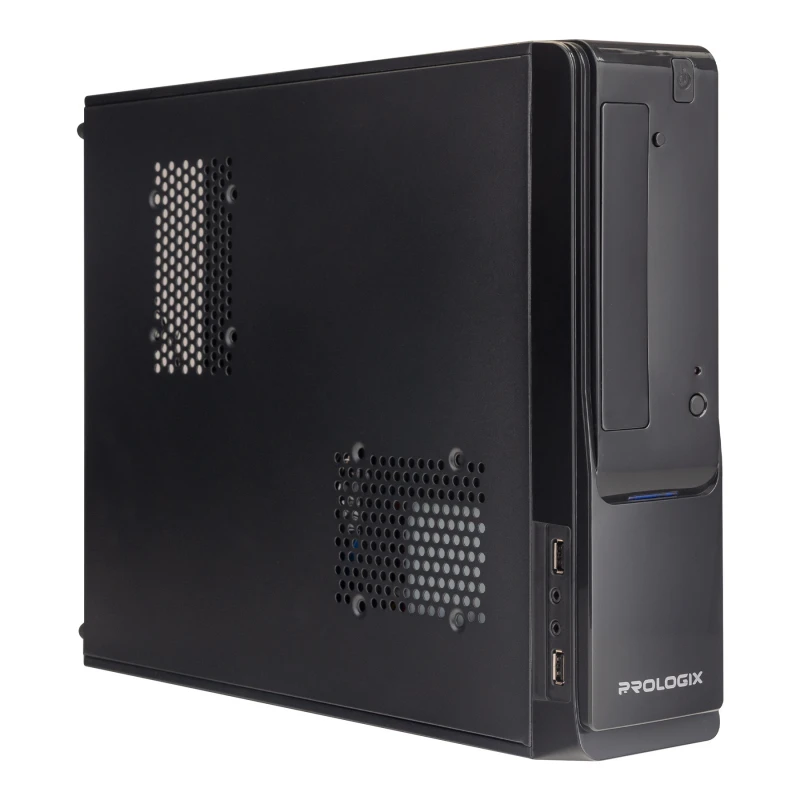 Високоякісний корпус Prologix E100 Slim 400W Black має компактні розміри - всього 370х86х310 мм. Він зроблений з якісного пластику і сталі, товщина якої дорівнює 0.5 мм. Також корпус має стильний дизайн, який впишеться в будь-який інтер'єр, і ідеально підходить для збірки професійного і домашнього комп'ютера. Має такі роз'єми: USB 2.0 (2 штуки) і аудіороз'єм (2 штуки). Компактність і низька ціна Якісна основа - запорука успіху збірки комп'ютера. Компанія Prologix пропонує високоякісний корпус Prologix E100 Slim 400W Black з блоком живлення 400 Вт, який розташовано вгорі корпусу. Головними перевагами такого корпусу є його доступна вартість і можливість самостійної та професійної збірки. Ідеально підходить для офісних і домашніх комп'ютерів. Компактні розміри корпусу формату SFF і невелика вага 3.54 кг дадуть змогу поставити обладнання в будь-яке зручне місце. Високоякісні матеріали пластик і сталь забезпечать довговічність купленого вами корпусу. Зручне розташування елементів Корпус має 1 відсік 2.5, 1 відсік 3.5, а також 4 слоти для встановлення карти розширення. Є 2 вбудованих роз'єми під USB 2.0 і 2 роз'єми для під'єднання навушників і мікрофона. Блок живлення розміщено вгорі, завдяки чому в ньому збирається менше пилу. Корпус Prologix E100 Slim 400W Black має бічну опцію (1х80 мм) і верхню (1х60 мм) для встановлення вентиляторів, які надійно охолоджуватимуть комп'ютер і забезпечать безперервну роботу. Купити корпус Prologix E100 Slim 400W Black - чудове рішення для збірки домашнього або професійного комп'ютера.