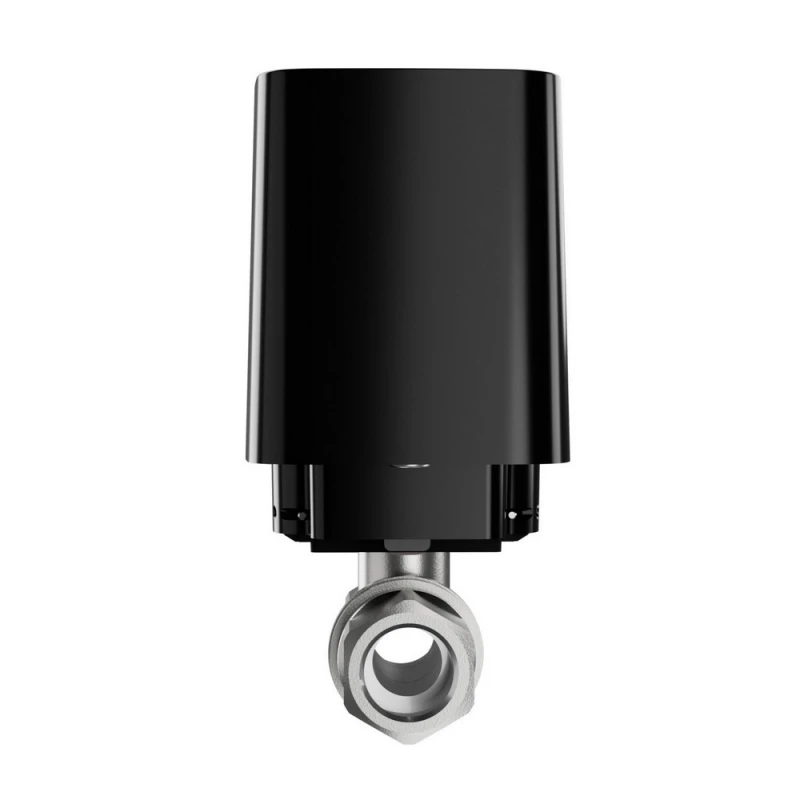 Кран перекриття води з дистанційним керуванням. Сценарії автоматизації. Керування перекриттям води кнопкою. Віддалене керування та налаштування. До 3 років роботи від встановлених батарей. Опціональна робота від стороннього блоку живлення. Дальність радіозв'язку з хабом або ретранслятором радіосигналу при відсутність перешкод до 1100 метрів. Колір чорний.