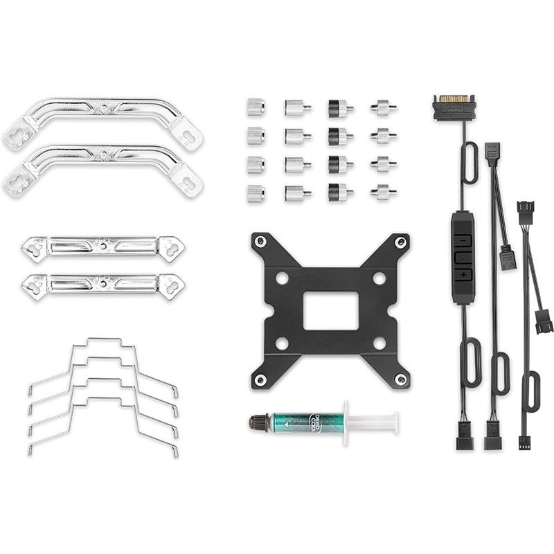 Однобаштовий процесорний кулер DeepCool AS500 PLUS конструктивно оснащений п’ятьма тепловими трубками і двома вентиляторами TF140S з ШІМ-керуванням, що забезпечує йому чудову продуктивність при збереженні тонкого профілю. Збільшення ефективності охолодження Теплообмін був оптимізований за рахунок цільного мідної основи з поверхнею, що забезпечує оптимальну площу контакту, укупі з п’ятьма 6-міліметровими тепловими трубками в форм-факторі однієї вежі з високою щільністю ребер ІДЕАЛЬНИЙ РОЗМІР Конструктивно кулер максимально сумісний по висоті з ОЗУ і відрізняється тонким (48 мм) профілем. ВІЗЬМІТЬ ТЕМПЕРАТУРУ ПІД КОНТРОЛЬ Високоефективні вентилятори TF140S з ШІМ-керуванням забезпечують точне регулювання від екстремального охолодження до режимів роботи з низьким рівнем шуму і тривалу експлуатацію. A-RGB-КОНТРОЛЛЕР СВІТЛОДІОДНИМ ПІДСВІЧУВАННЯМ Вхідний в комплект провідний контролер дозволяє швидко і легко управляти ефектами підсвічування без установки додаткового програмного забезпечення. У комплект також входять відповідні сполучні кабелі A-RGB для управління з материнської плати.
