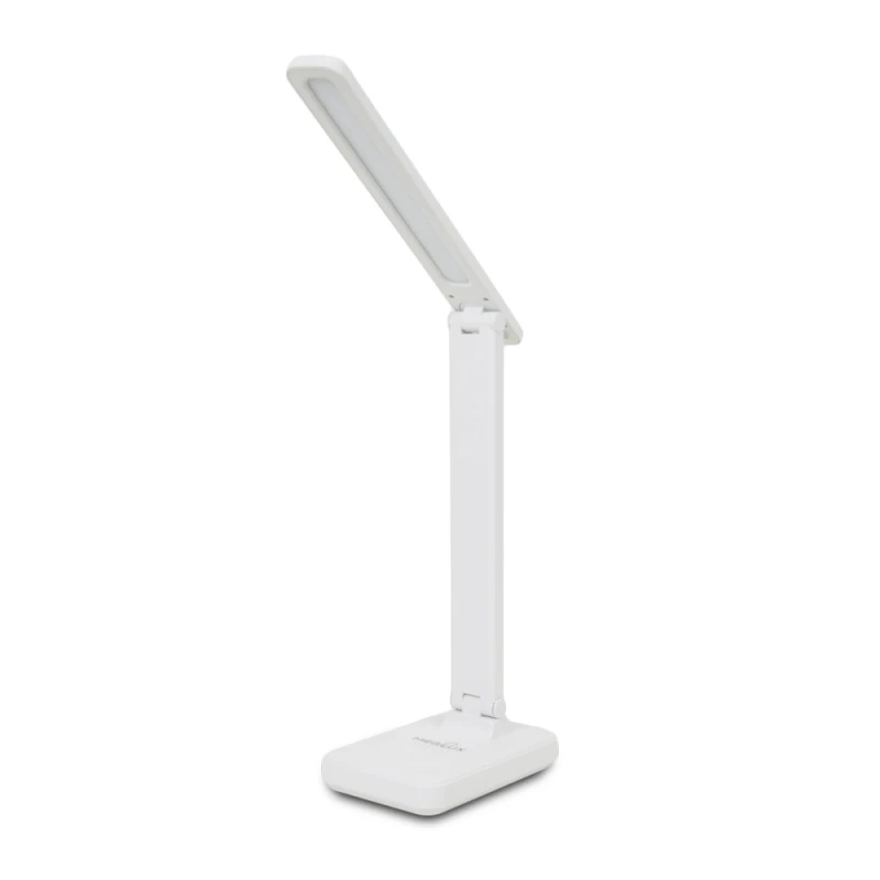 Акумуляторна складна настільна лампа. Функції: дотик для регулювання колірної температури, тривале натискання для регулювання яскравості, з тримачем для мобільного телефону, складна. Ємність акумулятора: 1200 мАг. Робоча напруга: 5V/1A. Колірна температура: 3000К - 6500К. Інтенсивність освітлення: Ra≥ 80. Потужність: 4 Вт. Блок живлення: 240 В / 50Гц / 0.2 А. Довжина USB кабелю: 80 см. Матеріал: ABS-пластик