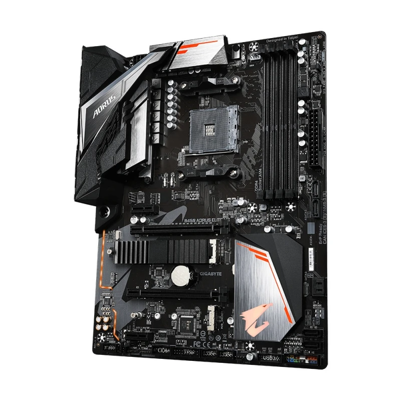 Материнська плата AMD B450 AORUS з 8+2-фазною технологією Digital Twin Power Design, двома роз’ємами M.2 з одним термозахисним кожухом, ігровою локальною мережею GIGABYTE з керуванням смугою пропускання, RGB FUSION 2.0, підтримкою CEC 2019. Підтримує AMD Ryzen серії 5000 / Ryzen серії 5000 G / Ryzen 3-го покоління/ Ryzen 2-го покоління/ Ryzen 1-го покоління/ Ryzen 2-го покоління з графікою Radeon Vega Graphics/ Ryzen 1-го покоління з графікою Radeon Athlon із графічними процесорами Radeon Vega. Двоканальна пам’ять DDR4 без ECC без буферизації, 4 модулі DIMM. 8+2-фазна конструкція Digital Twin Power з низьким RDS(on) MOSFET. Порти HDMI, DVI-D для кількох дисплеїв. Вбудований екран введення/виводу Ultra Durable Design. Подвійний надшвидкий NVMe PCIe Gen3 M.2 (x4, x2) з одним термозахисним кожухом. Високоякісні аудіоконденсатори та захист від шумозаглушення зі світлодіодним підсвічуванням. GIGABYTE Exclusive 8118 Gaming LAN з керуванням смугою пропускання. RGB FUSION 2.0 підтримує адресні світлодіоди та світлодіодні стрічки RGB. Smart Fan 5 оснащений 6 датчиками температури та 4 роз’ємами для гібридних вентиляторів з функцією FAN STOP. APP Center, включаючи утиліти EasyTune та Cloud Station. CEC 2019 Ready, заощаджуйте електроенергію простим клацанням миші.