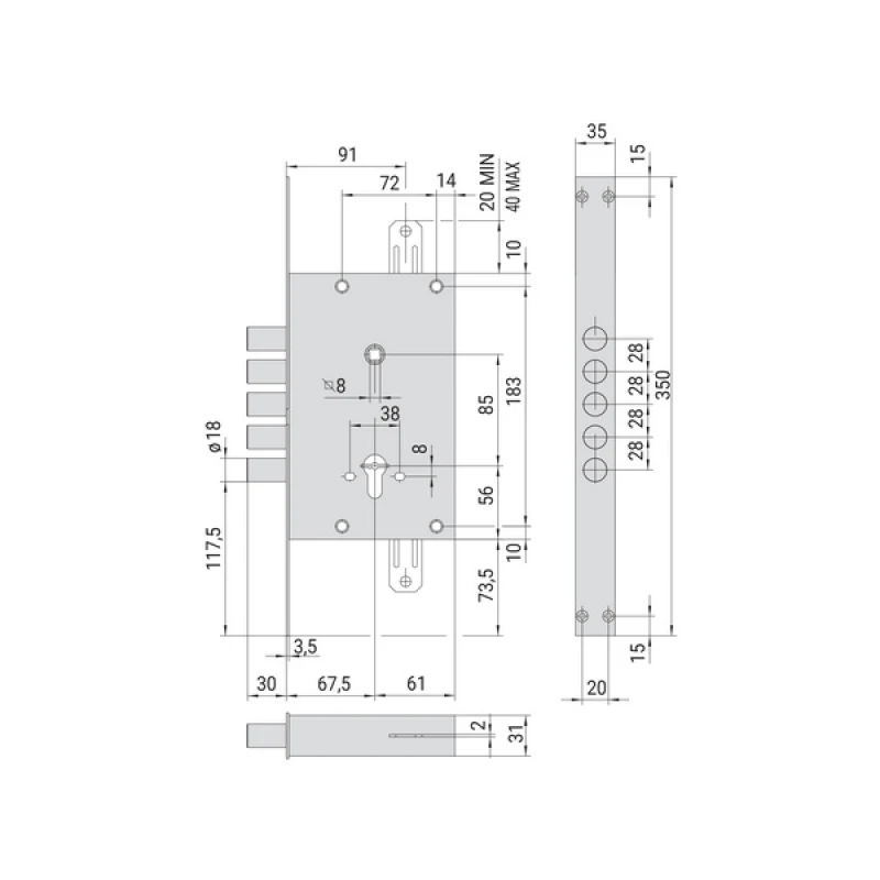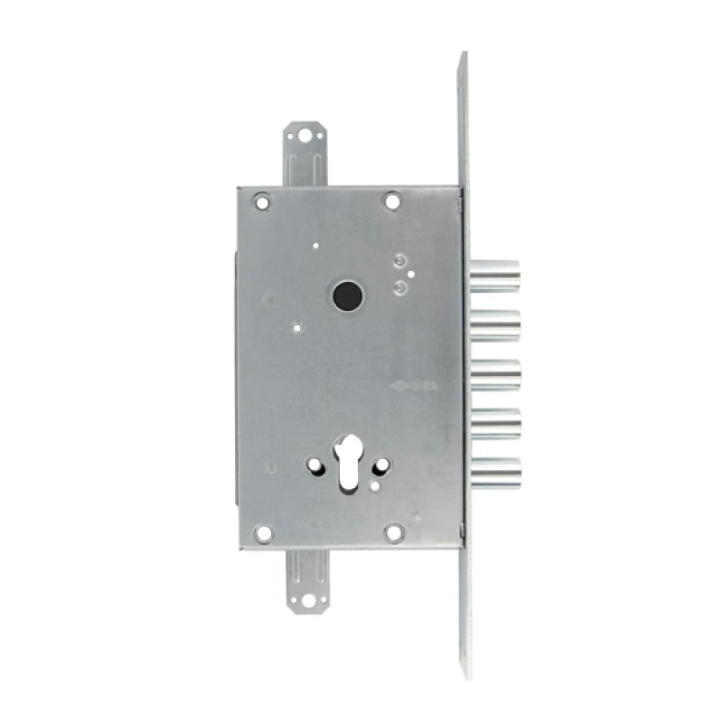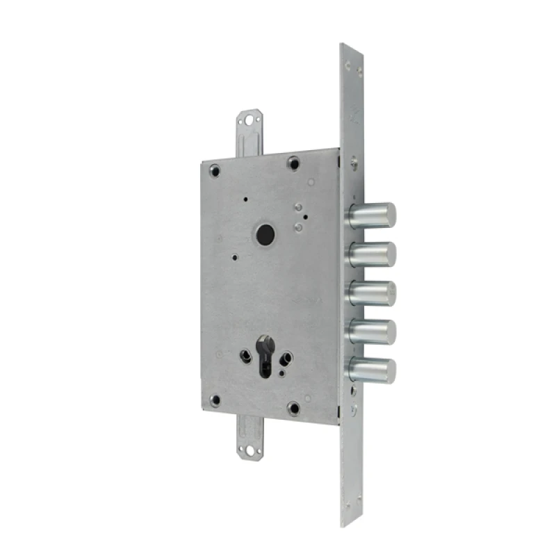 Врезной замок итальянского производства CISA 56525 Revolution Pro – это 5-ти ригельный замок с цилиндровым механизмом закрывания. Управляется сердцевиной распространенного стандарта EURO DIN, которая выбирается отдельно в зависимости от ваших потребностей. Замок устанавливают на металлические входные двери в качестве верхнего дополнительного или в качестве основного для гаражных ворот. Особенностью этой модели является система безопасности Revolution Pro, которая блокирует замок при удалении сердцевины из гнезда. Она активируется при полном закрывании на 3 оборота ключа. CISA 56525 можно установить как в левую, так и правую дверь.