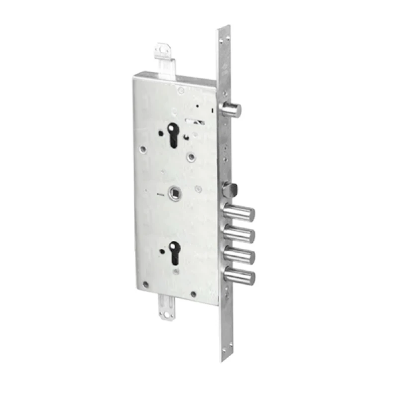 Замок CISA 56785 – это комбинированный замок, закрывание которого осуществляется двумя сердцевинами стандарта EURO DIN. Это усиливает защитные свойства, поэтому его обычно мастера советуют к установке в металлическую дверь усиленной конструкции. Замок 4-х ригельный, но имеет еще дополнительный ригель, управляемый верхним цилиндром. Он блокирует работу основного нижнего механизма.