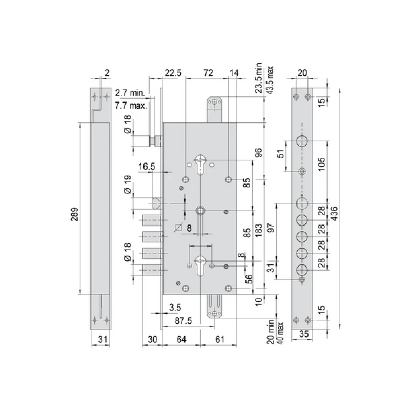 Механизм замка CISA 56785 двухсистемный Revolution Pro (BS67,5*85мм) взаимозависимый с блокировкой