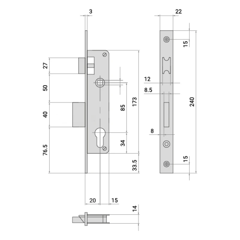 Механизм замка CISA LL 44820.20.0.20 язычок (BS20*85мм, 22 мм) нержавеющая сталь
