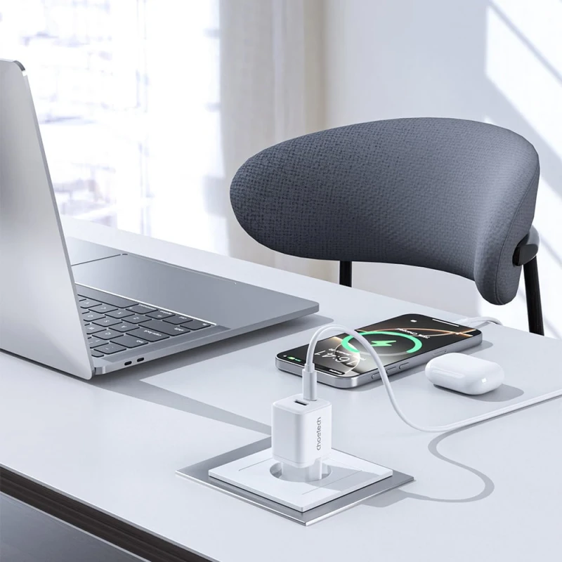 Мережевий зарядний пристрій Choetech PD6052 PD35W GAN A+C White