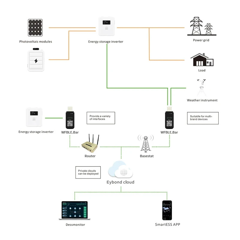 Модуль Wi-Fi Kit забезпечує бездротовий зв'язок між автономними інверторами та платформами моніторингу. Користувачі мають можливість віддаленого моніторингу та керування інверторами при використанні модуля Wi-Fi з додатком Smart ESS для Android|iOS або через веб-сервіс DessMonitor з ПК/ноутбук.