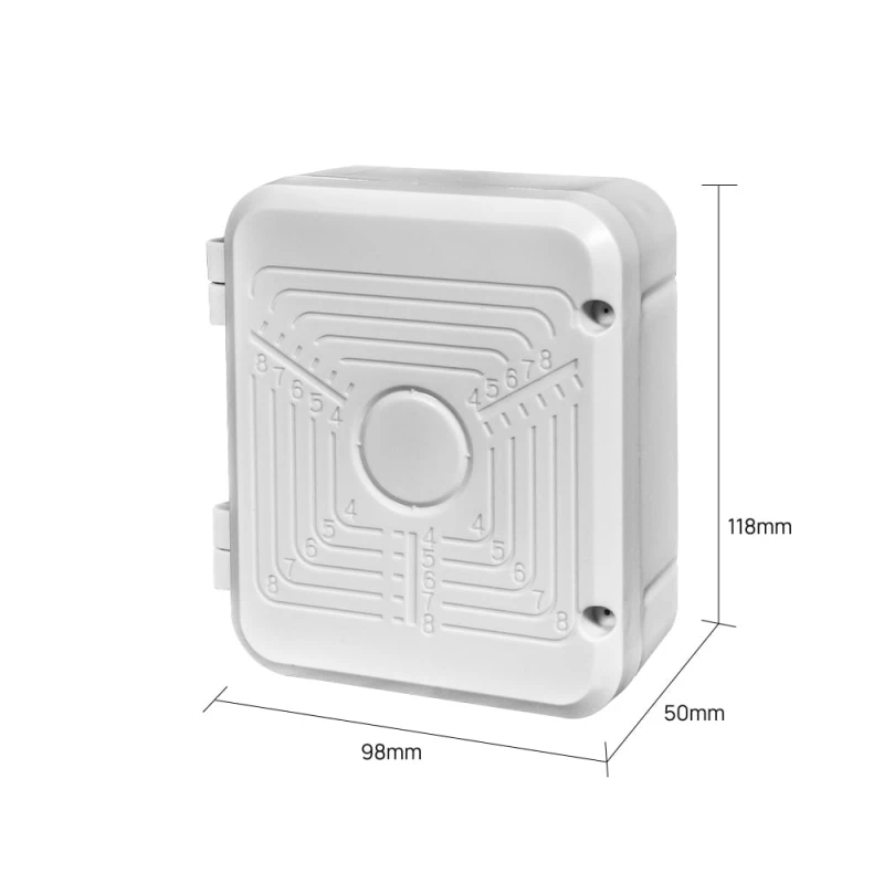 Монтажна коробка для кріплення камер відеонагляду та комутації; матеріал – пластик, стійкий до ультрафіолету та перепадів температур; накладний монтаж; зовнішнє встановлення; розміри 118 / 98 / 50 мм
