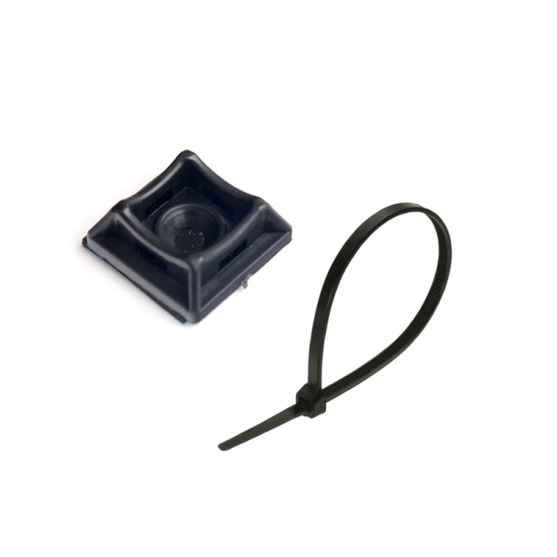 Монтажный комплект: Стяжка Relfix 4 x 250 мм (100 шт/уп) черная + Площадка для стяжки Relfix самоклеящаяся универсальная 20 x 20 мм (50 шт/уп) черная