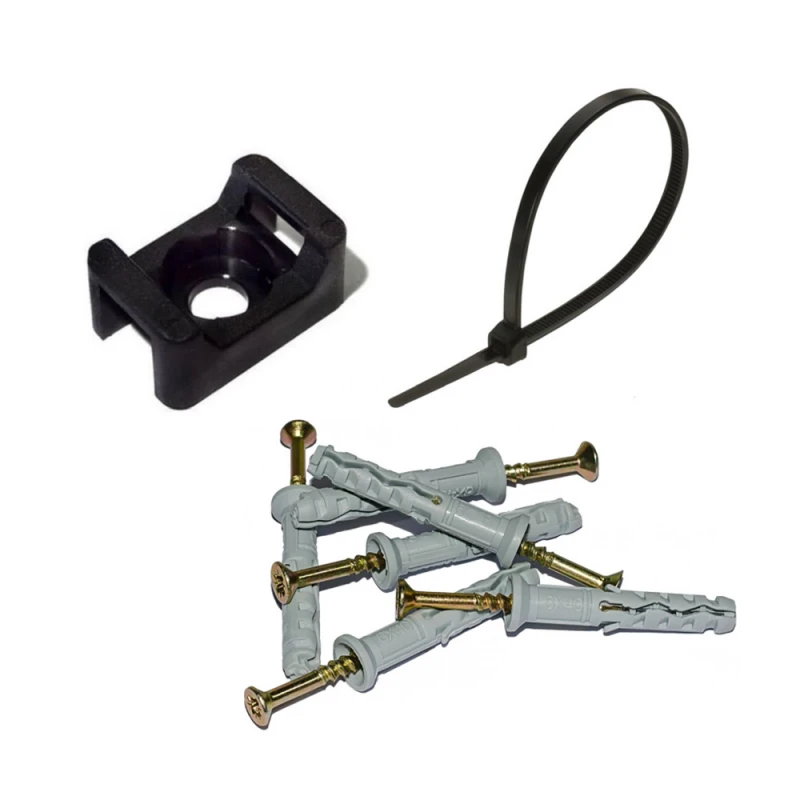 Монтажный комплект: Стяжка Relfix 5 x 450 мм (100 шт/уп) черная + Площадка для стяжки под дюбель 16 x 22 мм черная (100шт) + Дюбеля быстрого монтажа 6 x 40 мм потай (100 шт/уп)