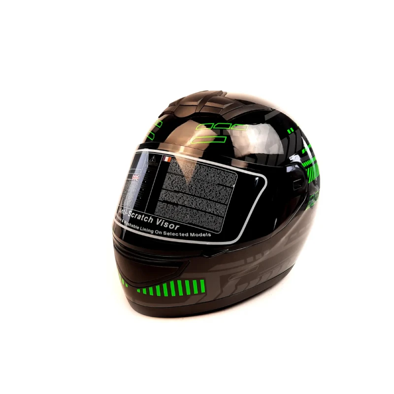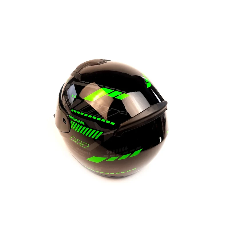 Мотошлем интеграл Forte 902 черно-зеленый (размер L) - шлем для защиты человека при вождении мотоцикла с тонированным визором и съемным подголовником.