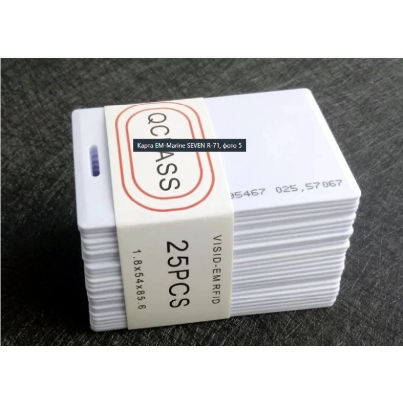 Карта доступа SEVEN R-71 - самые простые и дешевые бесконтактные карты для контроля доступа в мире, соответственно самые распространённые. Данный стандарт работает на чистоте 125 кГц. Эти карты имеют стандартный размер 86х54мм (стандарт ISO7810). Карты имеют объем памяти 64 бит (40 из них составляет уникальный номер) и защиту от электромагнитных полей и статического электричества. Уникальный номер программируется заводом производителем и не является изменяемым пользователем. Карта EM-Marine SEVEN R-71 - тонкая (0,8мм). Тонкие карты отлично поддаются печати и удобны для хранения в портмоне или бумажнике, тем более что RFID стандарт EM-Marine позволяет считывать информацию до 15 см от устройства чтения.