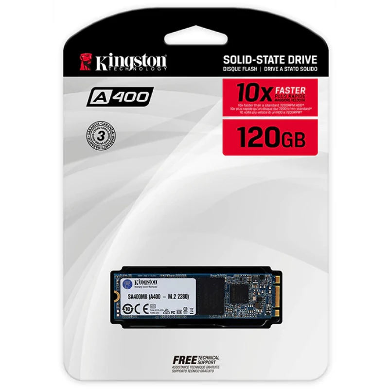 Твердотільний накопичувач Kingston A400 значно підвищує швидкість роботи системи, забезпечуючи більш високу швидкість запуску, завантаження і передачі даних в порівнянні з механічними жорсткими дисками. Цей SSD створений на базі контролера останнього покоління зі швидкістю запису і читання 320МБ/с і 500МБ/с, і забезпечує в 10 більш високу швидкість роботи у порівнянні з традиційними жорсткими дисками. Завдяки цьому забезпечується підвищена продуктивність, надчутлива багатозадачність і загальне прискорення системи.