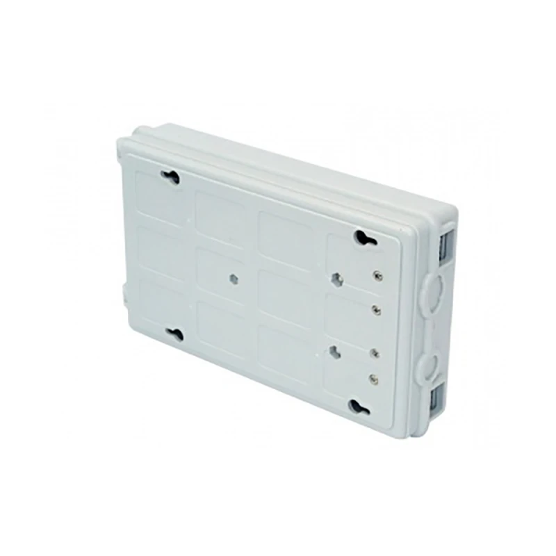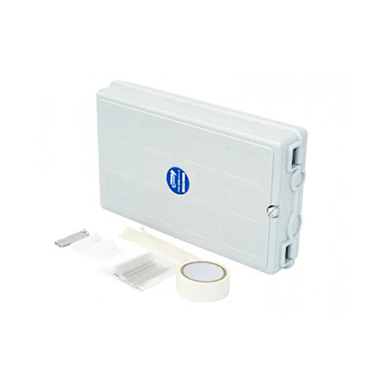 Пластиковий настінний оптичний міні-бокс Crosver FOB-D дозволяє обробляти до 36 оптичних волокон. Пігтейли виводяться назовні через спеціальні ущільнювачі.