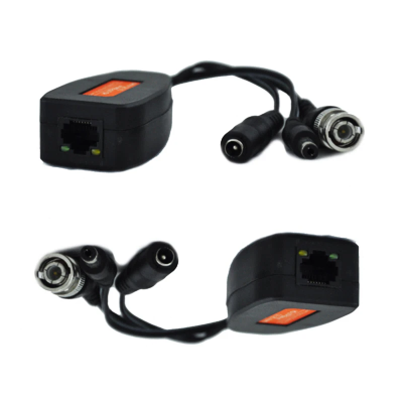 Одноканальный пассивный приемник и передатчик СVI, TVI, AHD, CVBS (с BNC+ POWER на шнурке) видеосигнала и питания по кабелю витой пары.