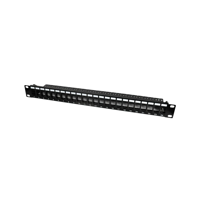 Патч-панель мережева для модулів Keystone на 24 порти, для встановлення у стійки/шафи 19 дюймів; висота 1U; кабель UTP (неекранована вита пара); задній організатор кабелю