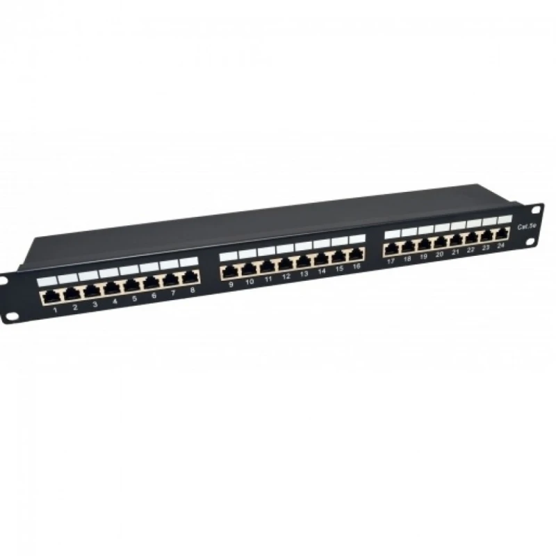 Патч-панель CMS 19" 24xRJ-45 FTP, кат. 5e с организатором кабеля устанавливается в серверный шкаф или стойку и используется для подключения витой пары со стороны точки коммутации с активным сетевым оборудованием