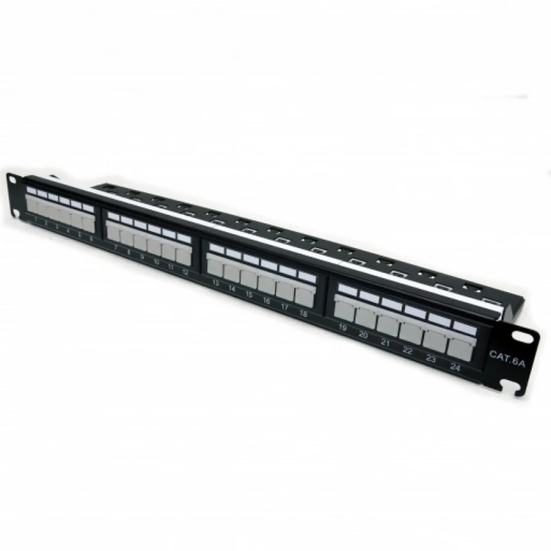 Патч-панель CMS 19" 24xRJ-45 UTP, кат. 6a с организатором кабеля и пластиковыми шторками