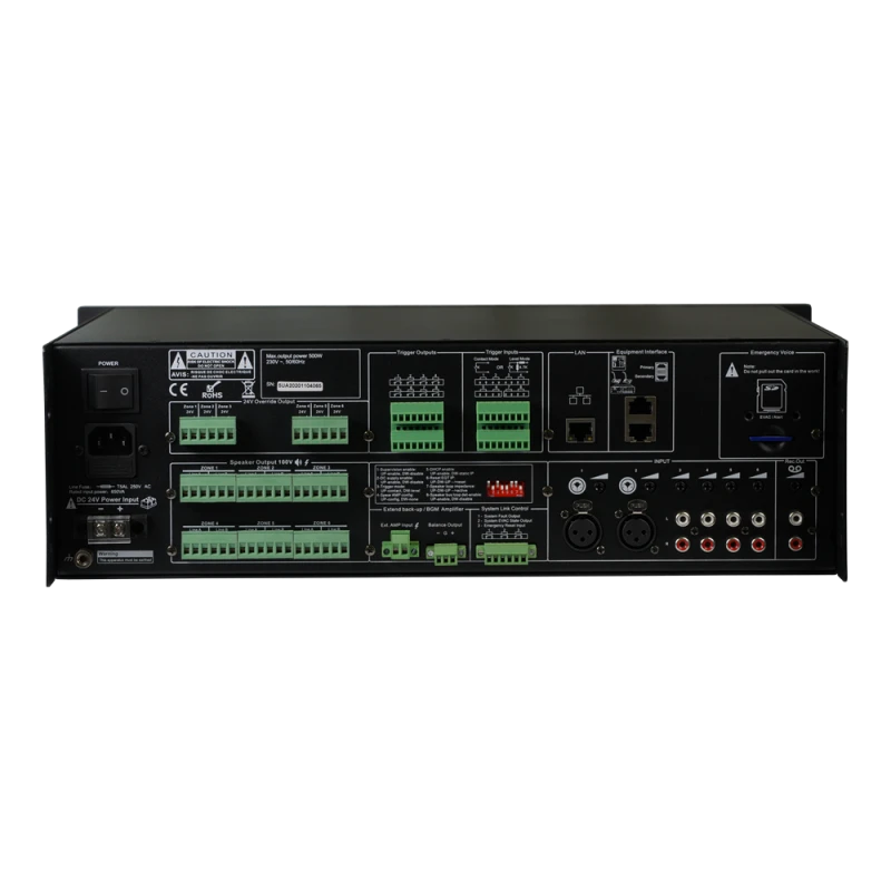 Підсилювач-контролер CMX EVAC-240, 6 зон, 19". Контролер системи оповіщення про пожежу EVAC-240 – це сертифікована система оповіщення та голосової евакуації згідно з EN54-16. Це універсальний контролер що вміщує в собі: програмне забезпечення для віддаленого доступу з ПК, контролер пейджингу зон, моніторинг всіх основних сигнальних ліній, управління підсилювачем, контроль ліній гучномовців, моніторинг роботи блока живлення та підсилювача потужності, резервне перемикання підсилювача потужності та незалежне регулювання гучності по зонах, диктофон, вбудований слот для SD-карти, аварійний мікрофон та інтерфейс пожежної сигналізації. Контролер оснащений найновішим цифровим сигнальним процесором DSP для забезпечення якості звучання Hi-Fi та неперевершену обробку сигналу у випадку комерційного повідомлення або аварійного оповіщення. Номінальна потужність 240Вт, постійна вихідна напруга 0-100В.