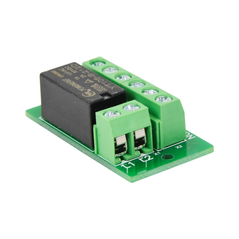 - РК-2 представляет собой одно реле на печатной плате с двумя группами контактов на переключение (может коммутировать две разные нагрузки одновременно). Схема подключения наклеена на самом реле