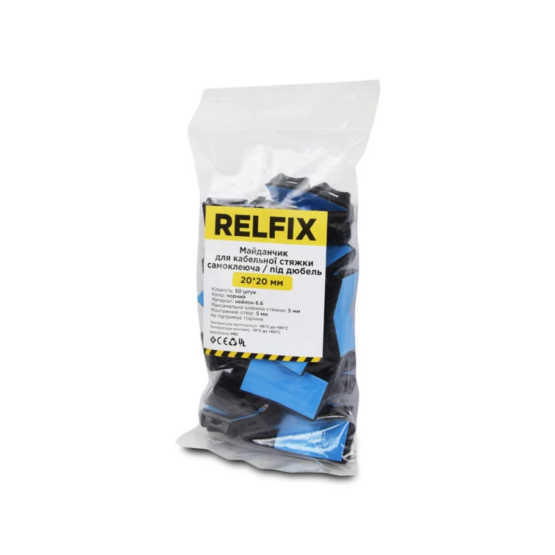 Площадка для стяжки Relfix самоклеящаяся универсальная 20 x 20 мм (50 шт/уп) черная
