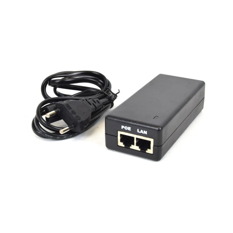 Для того, чтобы передавать питание по Ethernet кабелю (обычно это кабель UTP 5-ой категории) необходимо специальное устройство – инжектор PoE, который внедряет в сигнальный кабель напряжение питания.