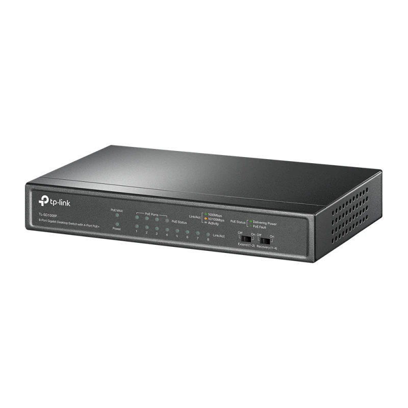TP-Link TL-SG1008P — это 8-портовый гигабитный неуправляемый PoE-коммутатор с 4 портами PoE+. Он отвечает стандарту PoE+ 802.3af/at, что позволяет каждому порту PoE поддерживать до 30 Вт мощности. Коммутатор обладает общим бюджетом PoE в объеме 64 Вт и четырьмя PoE-портами, что предоставляет широкие возможности для использования в системах видеонаблюдения в офисах, общежитиях и малых бизнесах. TL-SG1008P совместим с IP-камерами, точками доступа, IP-телефонами, компьютерами, принтерами и другими устройствами.