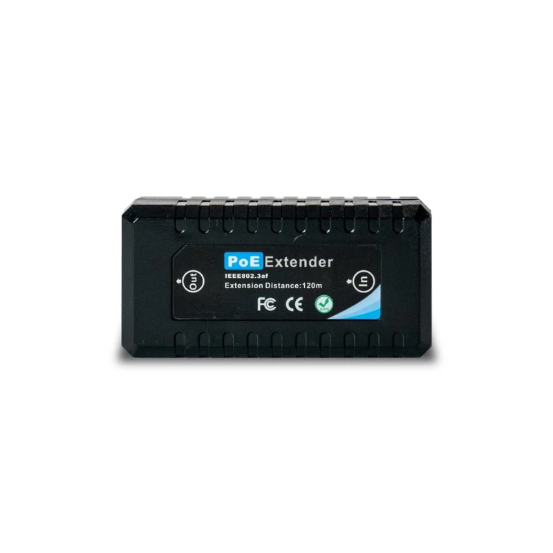 POE-подовжувач 1-портовий 10/100M 802.3af; 1POE вхід/1POE вихід; максимальна вихідна потужність -12Вт; максимальна довжина вхідного/вихідного кабелю – 120/120м; матеріал корпусу: пластик; ступінь захисту: IP40; робоча температура від -20°C до 50°C. Розміри: 74 / 37 / 25 мм; вага: 0.1кг