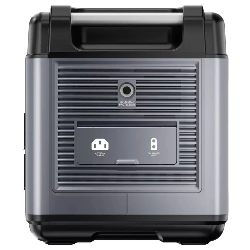 Портативне джерело живлення потужністю 2400 Вт/200-240 В (чиста синусоїда), з режимом ДБЖ, пікова потужність 4800 Вт. Вбудована LiFePO4 акумуляторна батарея потужністю 2048 Втг (51.2В/39.1Аг); вбудований зарядний пристрій 1800 Вт; вхід для сонячних панелей 12-48В/15А 500 Вт макс.; вхід автомобільної зарядки: 12В/8А, 24В/10А; вихід змінного струму: 4 порти 200-240 В 2400 Вт; вихід постійної напруги: 2 порти DC5521 12В/3А, 1 вихід автомобільної зарядки («прикурювач») 12В/10А, XT60 12В/10А; вихід USB (тип А) 2 шт. 5В/2.4А з загальною потужністю 12 В; вихід USB (тип А) 2 шт: QC3 (18 Вт макс); PD-вихід 2 шт: 5В/2.4А, 9В/3А, 12В/3А, 15В/3А, 20В/5А (100 Вт макс.); кількість циклів розряду-заряду АКБ ≥3500; час до повної зарядки АКБ 90 хвилин; вбудований LED-прожектор 2 Вт; робоча температура 0 °C ~ +40 °C; розміри 394 / 279 / 330 мм, вага 22 кг
