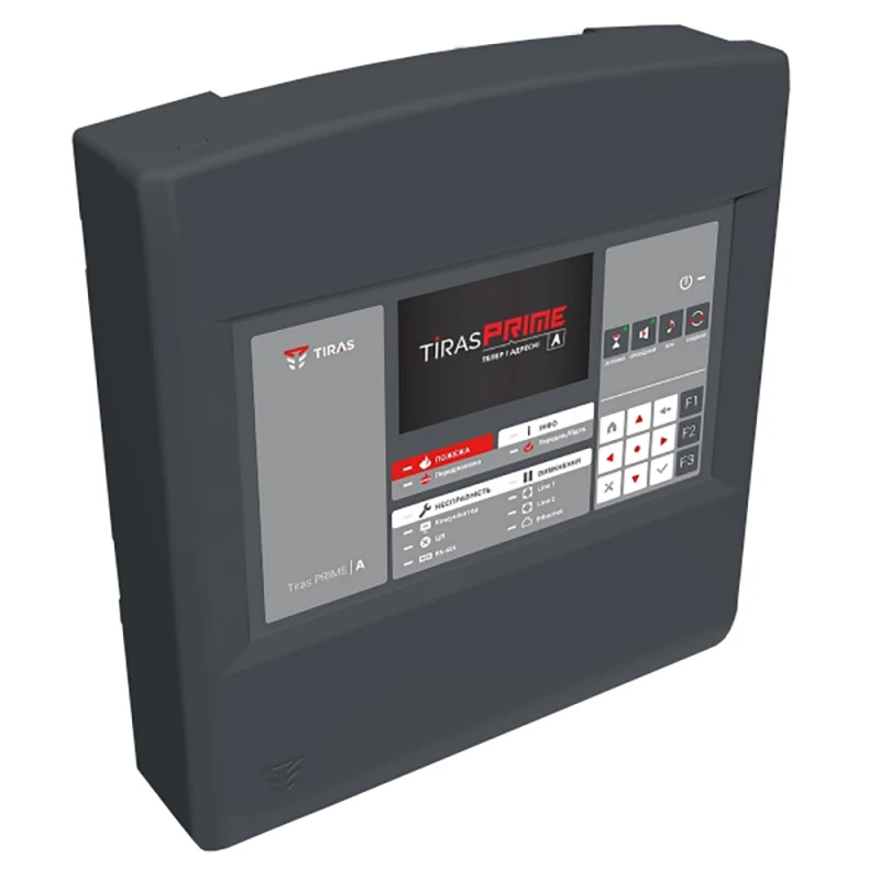 Тирас PRIME A - прибор приемно-контрольный пожарный. 500 зон пожарной сигнализации. 2 контролируемых выхода питания периферийных устройств напряжением 24В.