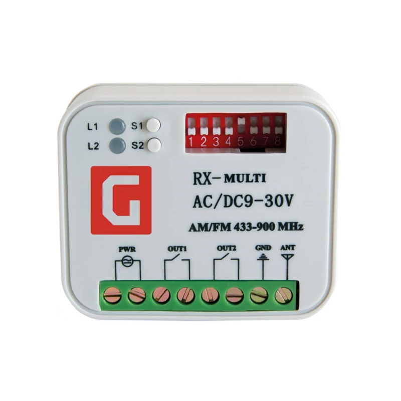 Особенностью приемника RX Multi является его способность записывать пульты на широком диапазоне частот, начиная от 433 МГц и до 868 МГц. Кроме того, приемник позволяет записывать пульты как с динамическим кодом (роллинг код), так и с постоянным статическим кодом. Однако стоит отметить, что одновременное использование пультов на частоте 868 МГц не допускается, за исключением пультов, работающих на частоте 433.92 МГц, например Came, An-Motors, Key, King Gates, Roger, а также других пультов. Все они могут одновременно использоваться с приемником RX Multi, обеспечивая гибкость и удобство в работе.
