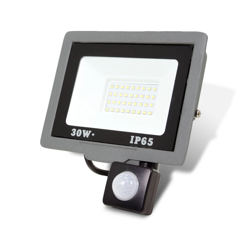 З датчиком руху. Потужність: 30 Вт. Джерело живлення: від мережі 220 В. Напруга: 230 В ±10 %. Спосіб монтажу: кронштейн. Кольорова температура: 6500К. Світловий потік: 2520lm. Кут світлового потоку: 120°. Термін служби: 20000 ч. Клас захисту: IP65. Матеріал корпусу: Алюмінієвий