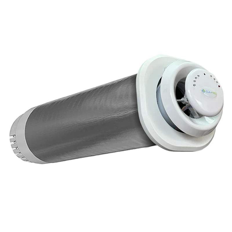 Рекуператор Climtec РД 200 Стандарт - система вентиляции с приточно-вытяжной функцией с фильтром очистки воздуха G3, автоматическим закрытием клапана перекрытия потоков и дистанционным управлением. Эффективность возврата тепла (рекуперации) 93%. Производительность 185 м³/ч. Потребляемая мощность 26 Вт, уровень шума 32 дБ.
