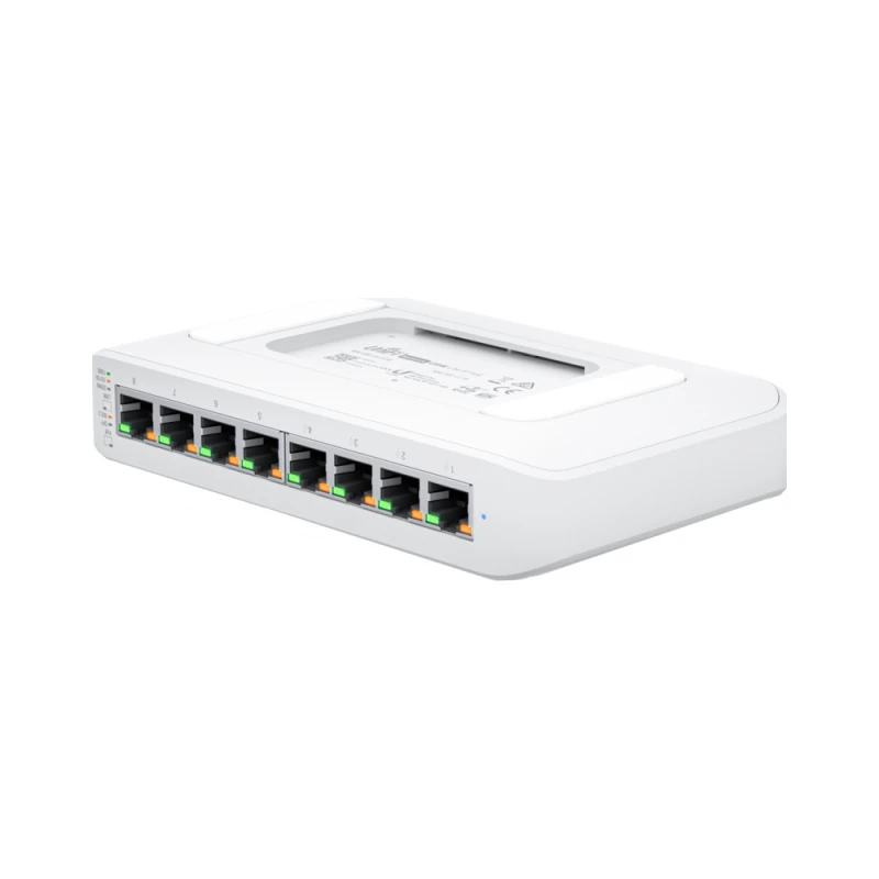Комутатор має 8 портів RJ45 з можливістю автовизначення стандарту PoE, з яких 4 порта підтримують стандарт IEEE 802.3af/at PoE+ для подачі живлення до 30 Вт на кожен порт. Максимальна передана абонентського обладнання потужність сумарно становить 52 Вт, що дозволяє живити точки доступу UniFi та інші сумісні пристрої.