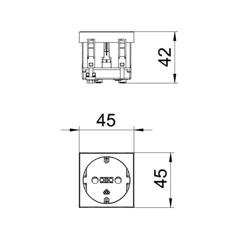Розетка OBO Bettermann modul 45 с заземлением и шторками 250 В 16 A белая с повышенной защитой, со съемными клеммами, 2-полюсная, с клеммами подключения согласно IEC 60884-1