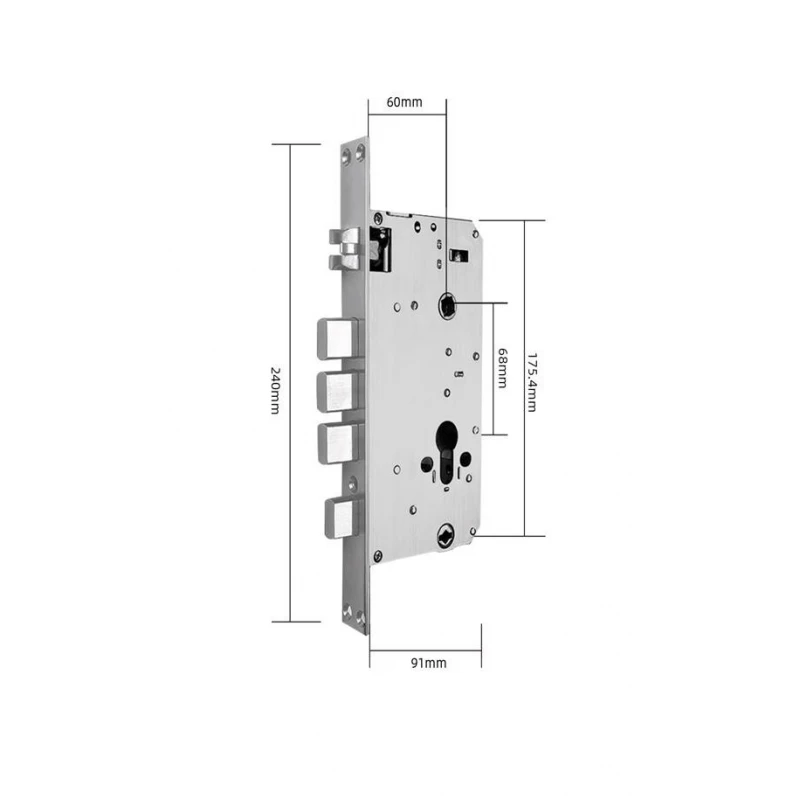 - Не имеет нажимной ручки, что делает его максимально безопасным и взломостойким. Управление ригелями производится с помощью мотора, расположенного во внутренней части замка. Мощный мотор-редуктор с внутренней стороны замка автоматически выдвигает прямые ригеля и надежно блокирует дверь противодействуя попыткам силового взлома.